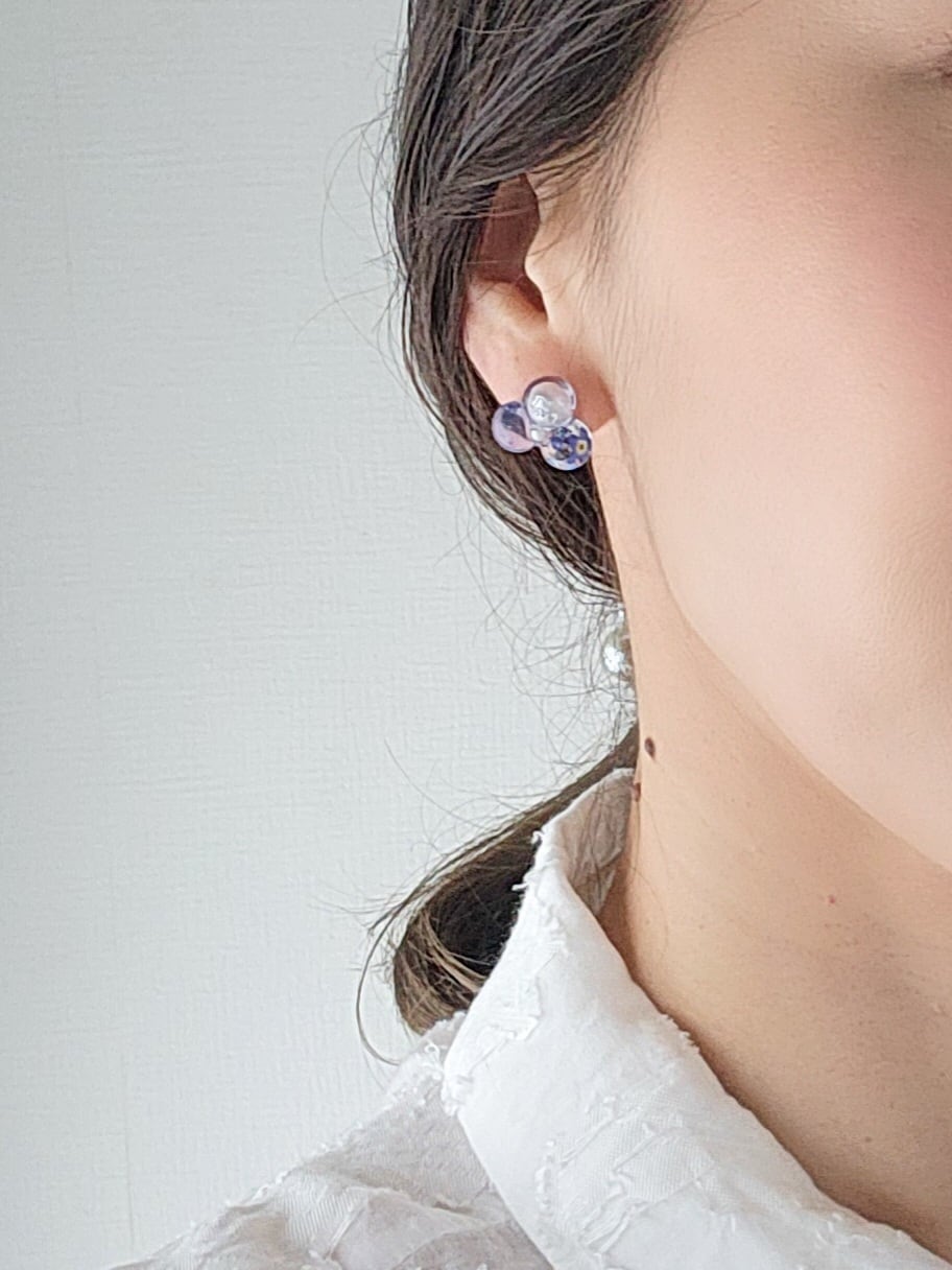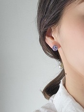 【素材】勿忘草、忘れな草(ドライフラワー)/淡水パール/樹脂/サージカルステンレスピアス/イヤリング(メッキ)