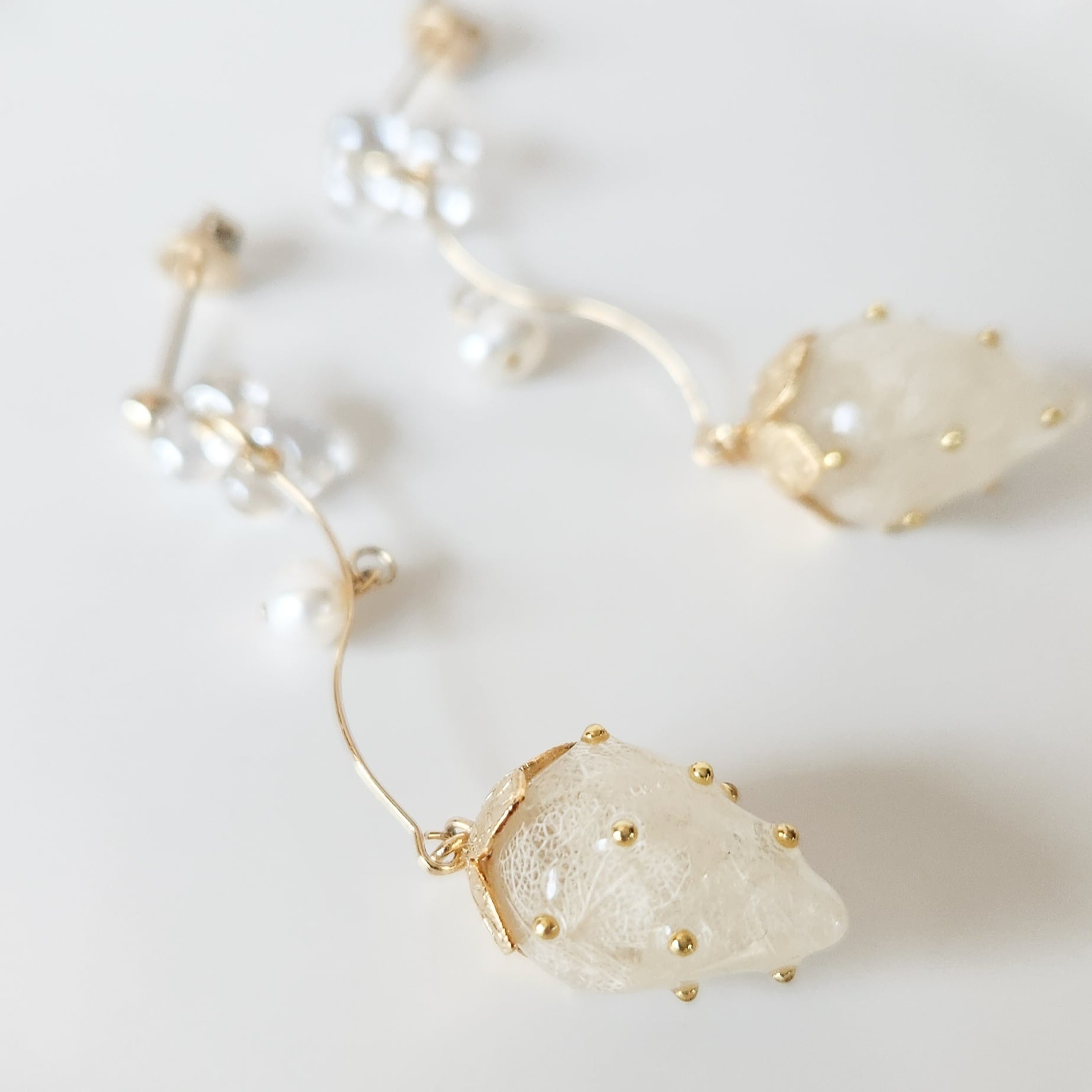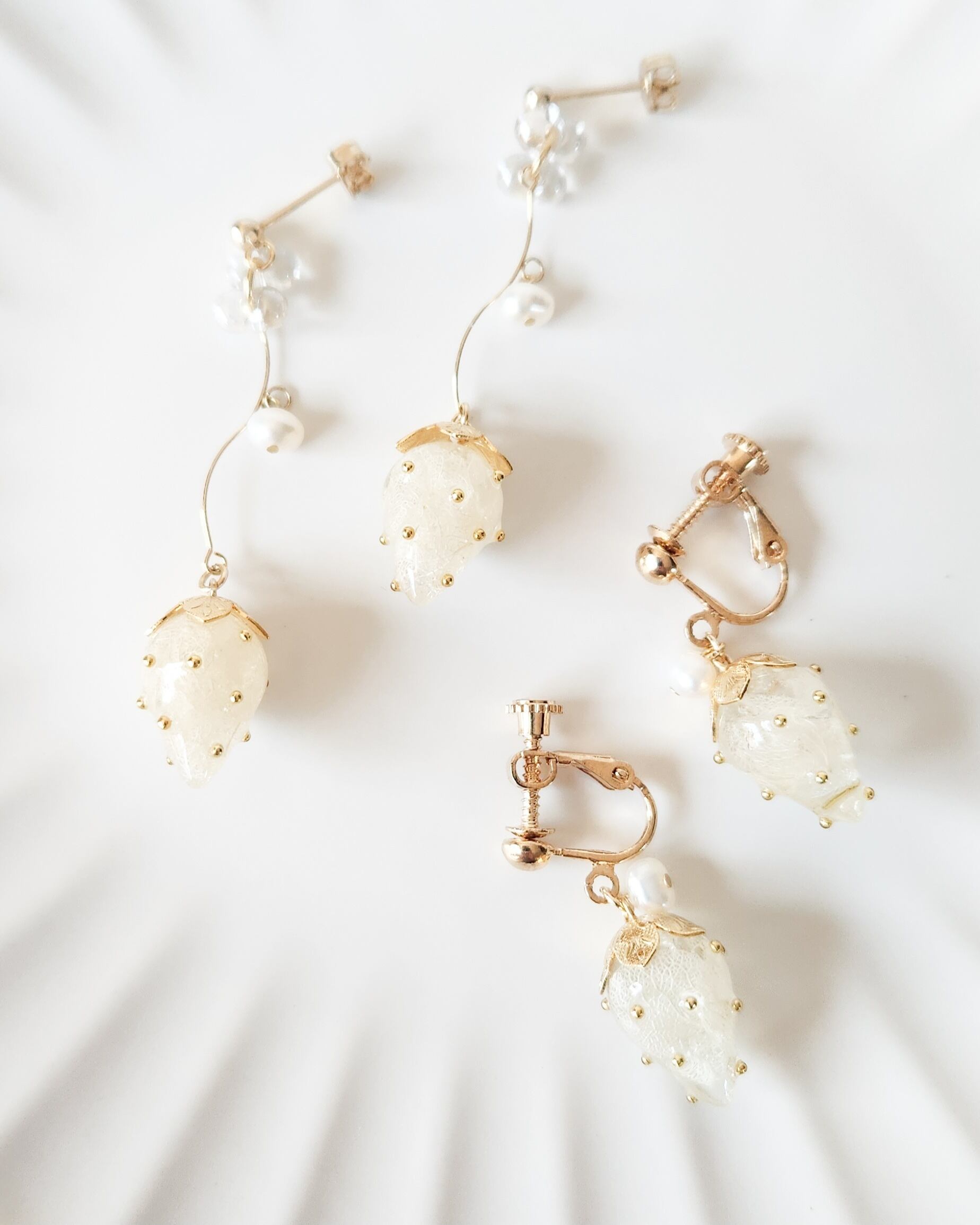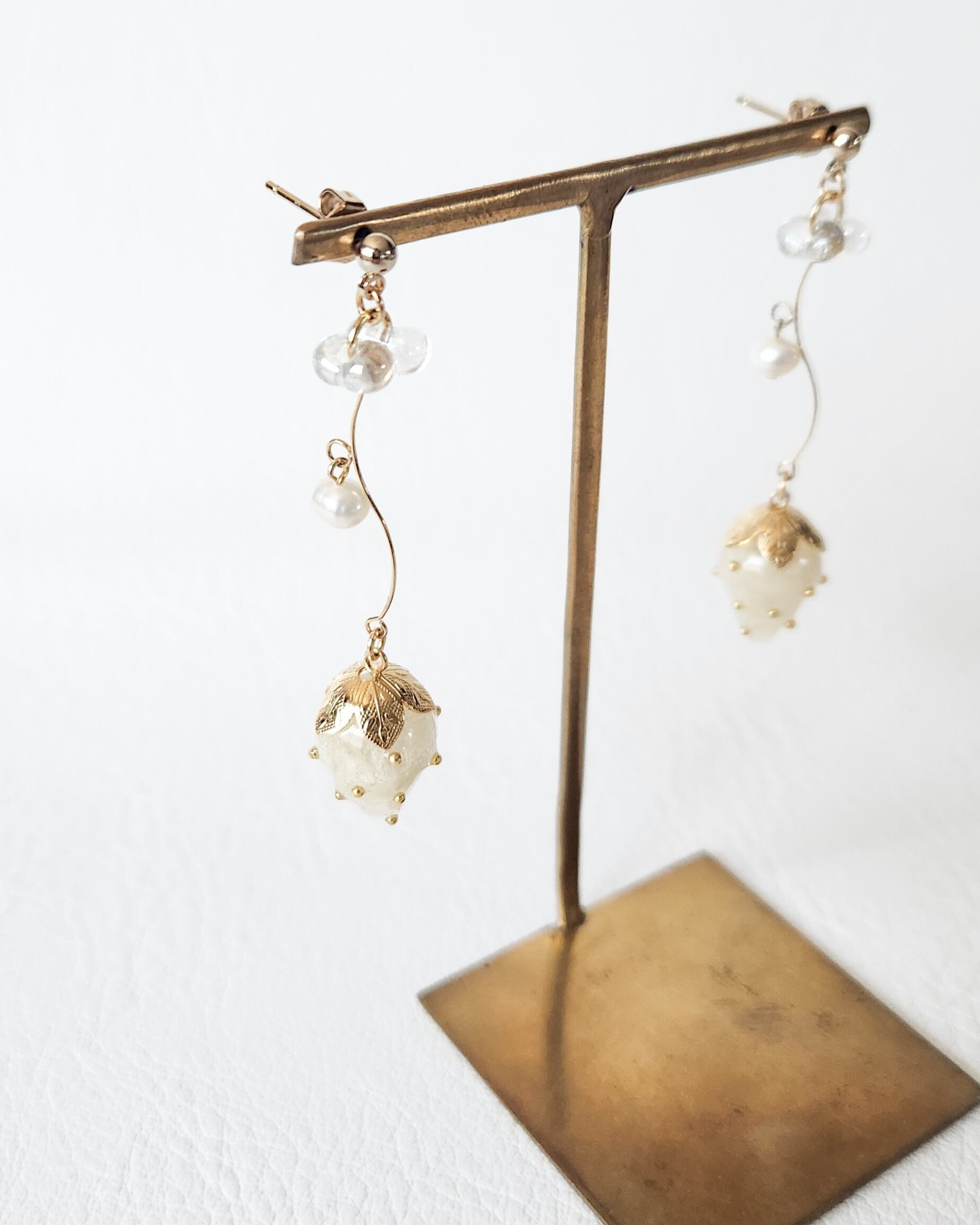 赤いちごとは違い、白色の紫陽花とゴールドのメタルで少し上品に。