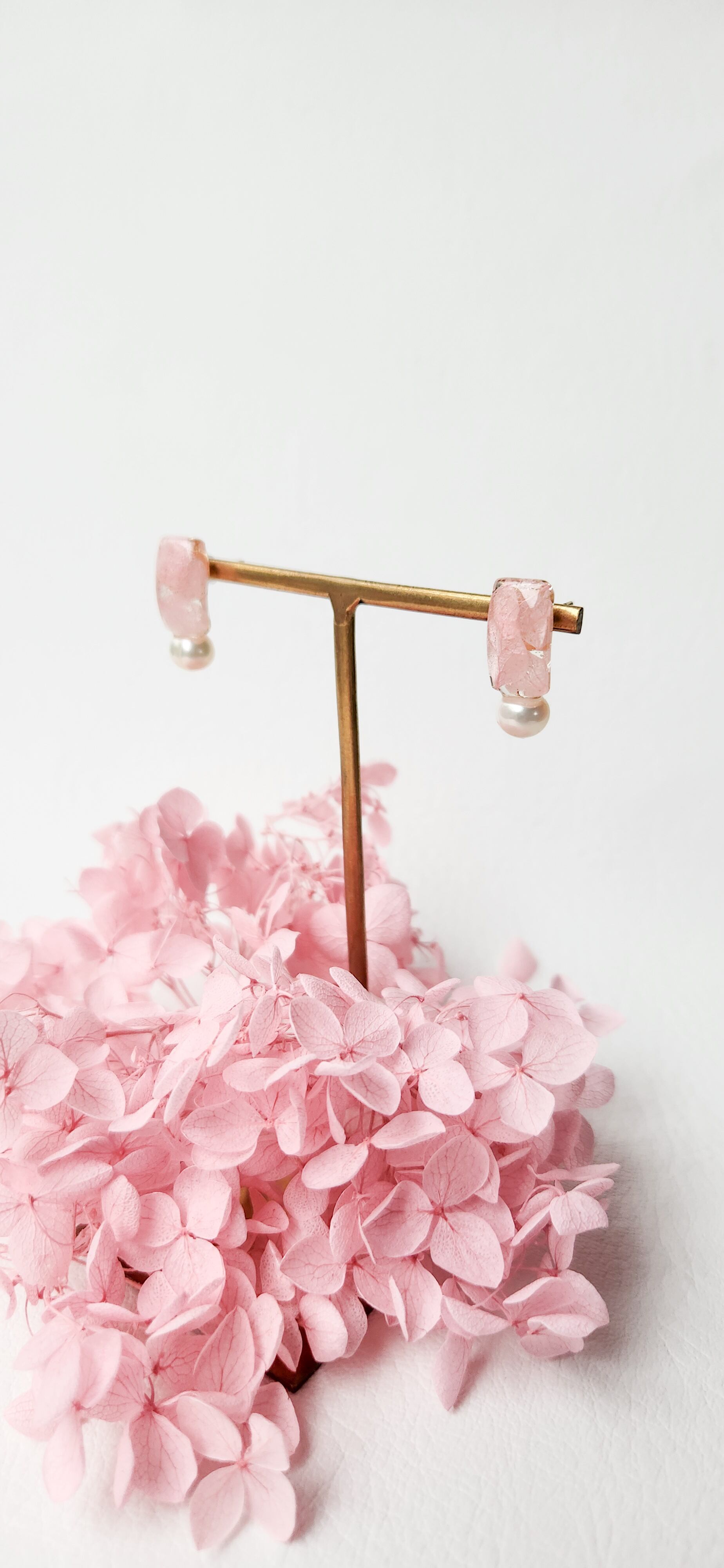 本物のお花(紫陽花プリザーブドフラワー)/淡水パール(約6mm)/樹脂/金具(メッキ)
