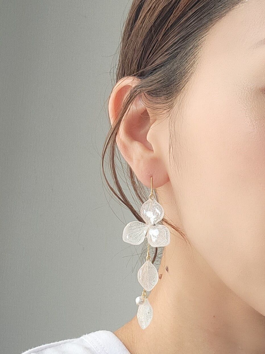 細い葉脈を美しく表現した紫陽花のデザインが、耳元で清楚な印象を与えます。