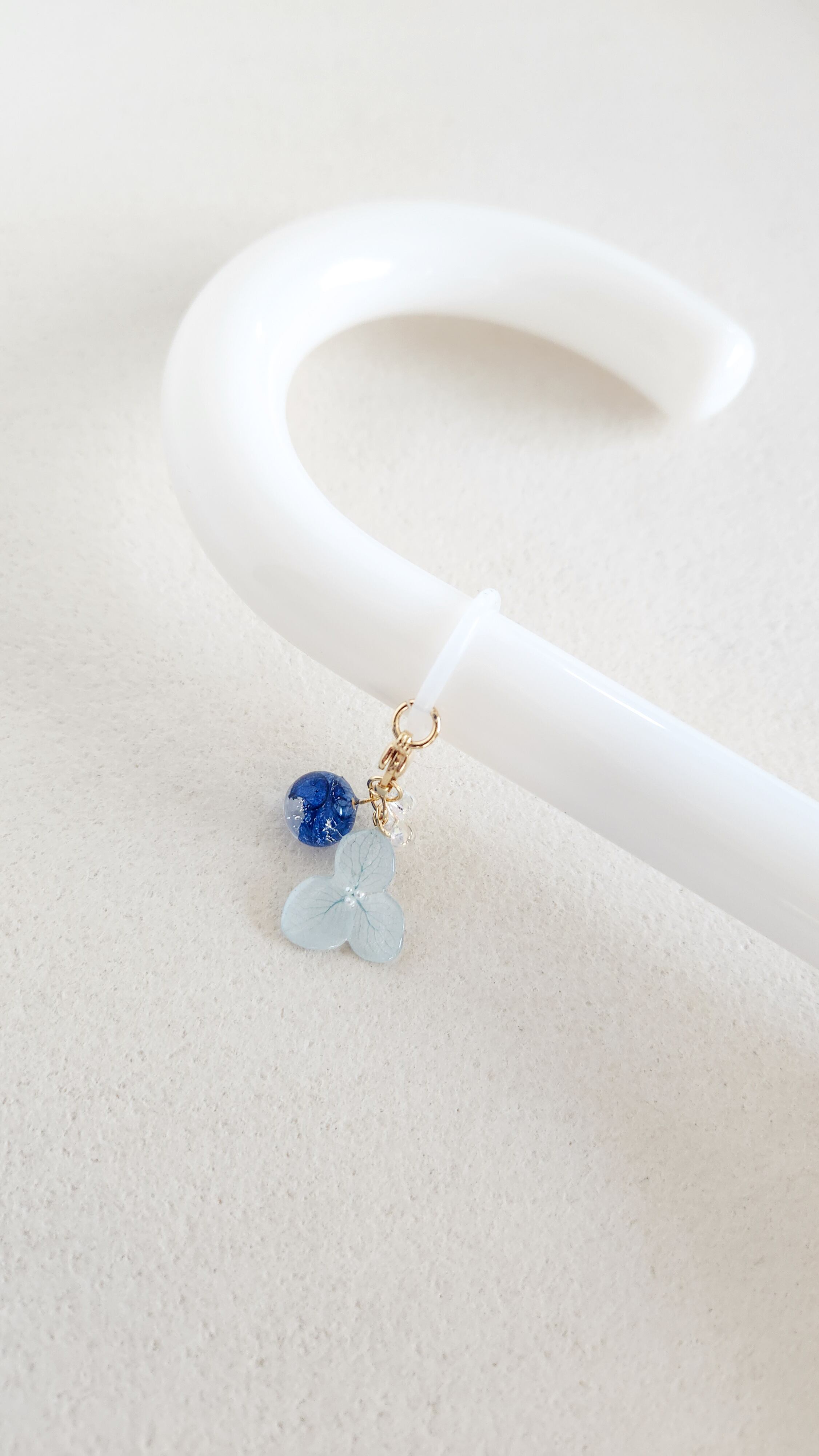 紫陽花の美しい花びらとチェコビーズをあしらった大人のアンブレラマーカー